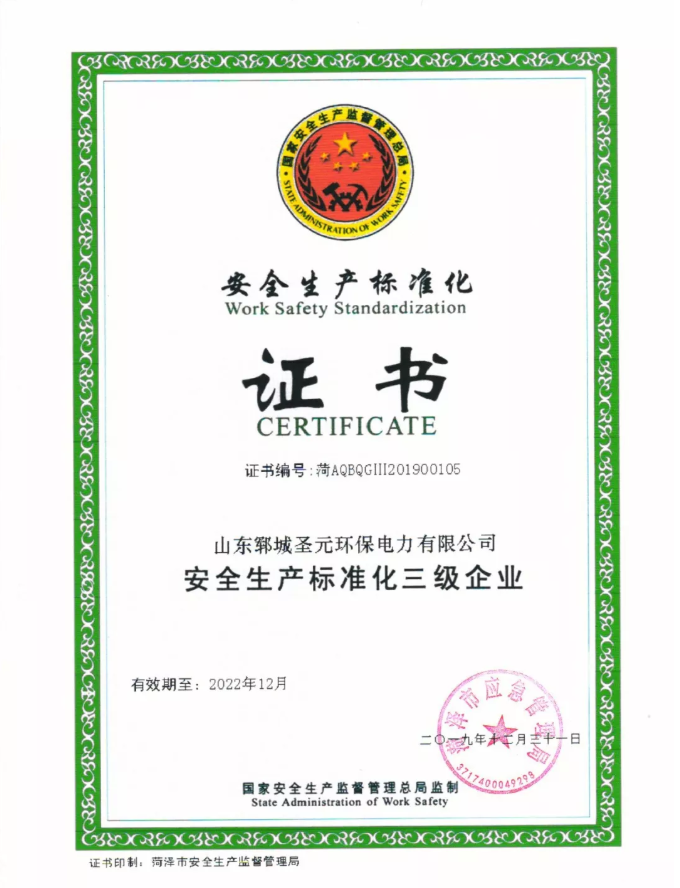 近日,山东菏泽市应急管理局授予郓城金沙澳门(中国)唯一官方网站“安全生产标准化三级企业”荣誉称号,这标志着郓城金沙澳门(中国)唯一官方网站安全生产管理迈向新的发展阶段。