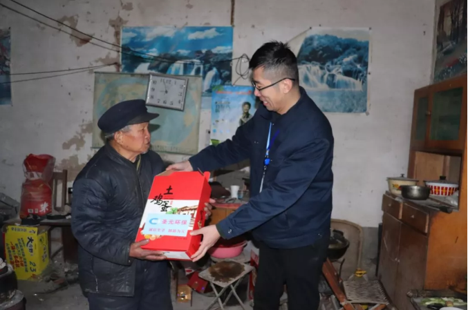 总经理助理焦磊为村民送上慰问品