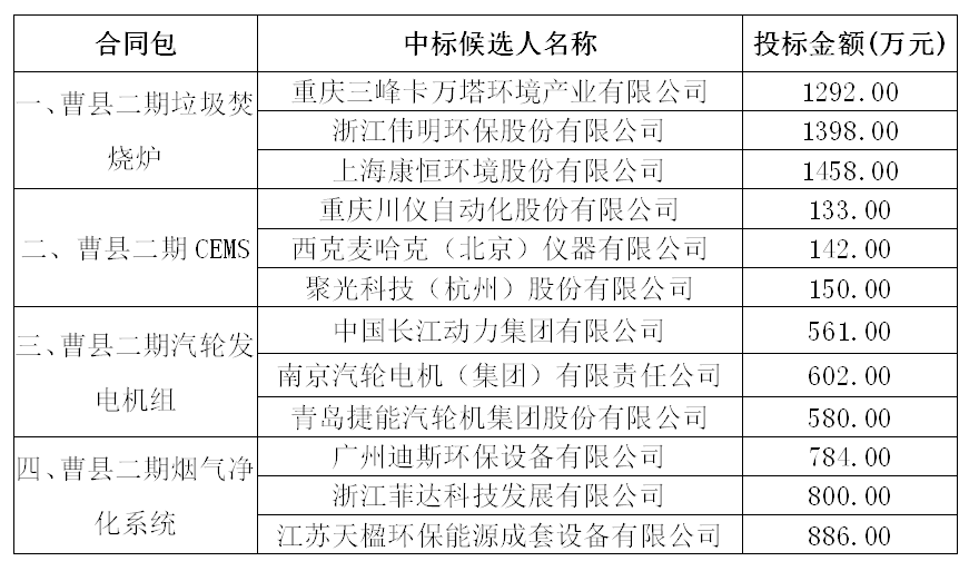 招标项目名称:金沙澳门(中国)唯一官方网站曹县生活垃圾焚烧发电厂二期工程垃圾焚烧炉、CEMS、汽轮发电机组、烟气净化系统采购项目