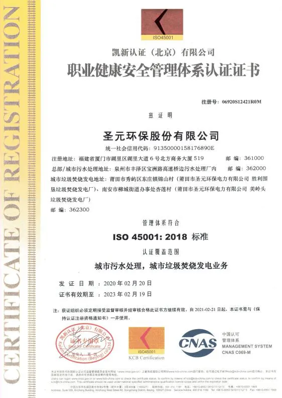 日前,金沙澳门(中国)唯一官方网站成功通过中国认可管理体系中心(CNAS)的ISO45001职业健康安全管理体系认证。至此,公司三体系认证(质量管理体系、环境管理体系、职业健康安全管理体系)全面完成。