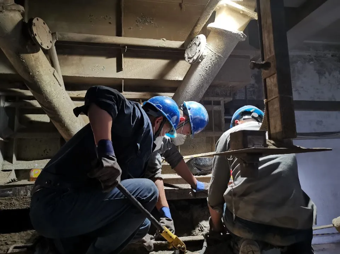 本次停炉的关键点之一在于过热器清灰和炉膛打焦。检修时,管理人员24小时轮班,技术部、生产部密集安排检修人员,许多员工放弃休班、积极参与、加班打礁。运行白班员工下班后也主动请缨协助清灰。彼时,炉膛尚有余温,现场条件恶劣,可是,各相关岗位人员迎难而上,克服空间狭小、炉膛高温等困难,多措并举,认真清理每根管道积灰,从大处着眼、小处着手,扎扎实实做事,确保检修质量。