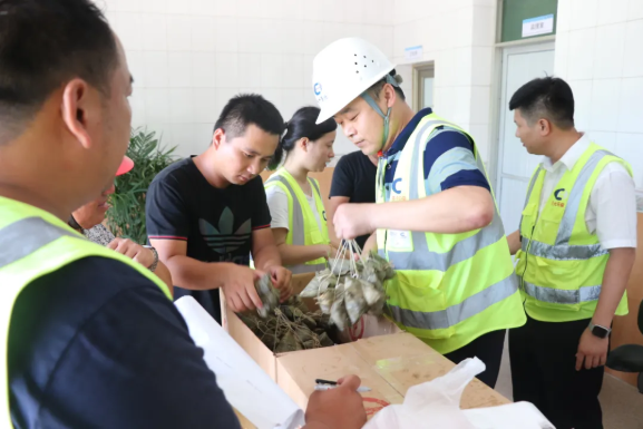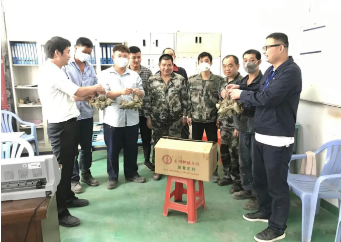 何敏副总现场转达了董事长的心意。南安金沙澳门(中国)唯一官方网站人事行政部和泉州金沙澳门(中国)唯一官方网站项目部统一组织下发饱含祝福与关爱的端午粽。手提粽子、心领祝福,员工们喜悦之情溢于言表。