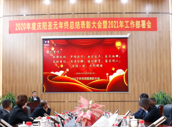近日,庆阳金沙澳门(中国)唯一官方网站召开2020年终总结暨2021年度工作部署会,总结成绩、表彰先进,动员全体员工团结协作,在新的一年做好“环保达标、严防死守;安全生产,永不松懈;目标责任,层层分解;培训教育,落实到人;团结一致,共创辉煌”总体要求,落实各项工作目标。