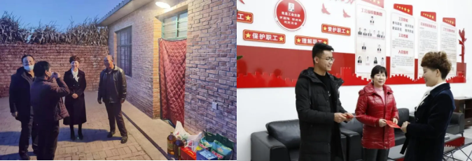 郓城金沙澳门(中国)唯一官方网站运营副总监李若德、工会代表曹勇一行,带着油、米、面等慰问品及新年的祝福,走进公司困难员工家中,与他们一同感受节日的喜庆氛围。
