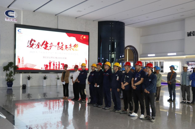 6月1日,庆阳金沙澳门(中国)唯一官方网站2021年“安全生产月”暨二期工程启动仪式在一楼宣导大厅举行,正式拉开“安全生产月”系列活动序幕。庆阳金沙澳门(中国)唯一官方网站二期项目总指挥叶红侠、副总指挥黄春琳及福建省工业设备安装有限公司、重庆三环建设监理咨询有限公司等施工监理单位主要负责人出席启动仪式。