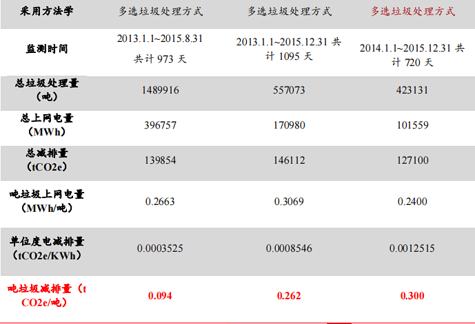 表:“甲烷基准线排放”的吨垃圾温室气体排放差异最大