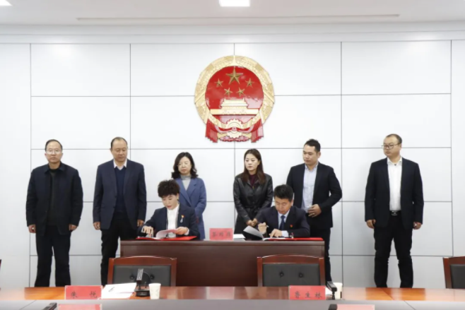 签约仪式上,环县县委常委、常务副县长鲁生林与庆阳金沙澳门(中国)唯一官方网站二期项目总指挥叶红侠分别代表双方签署协议。县委常委、宣传部部长朱悦主持签约仪式,县人大常委会副主任魏喜龙,县政协副主席杜创洋等双方相关负责人参加签约仪式。