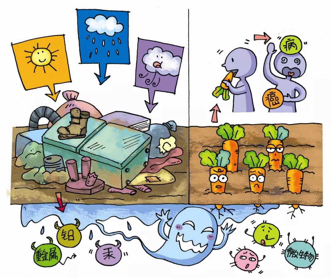 堆放的固体废物会占用大片土地,同时经受风吹日晒雨淋的侵蚀,有害物质挥发和溶出,会杀灭土壤中担负着碳循环和氮循环任务的部分微生物,使土壤丧失腐解能力,严重时导致寸草不生和荒漠化。固体废物中的重金属、持久性有机污染物在进入土壤之后,还可能在土壤和植物中富集浓缩,并通过食物链危害人体健康。
