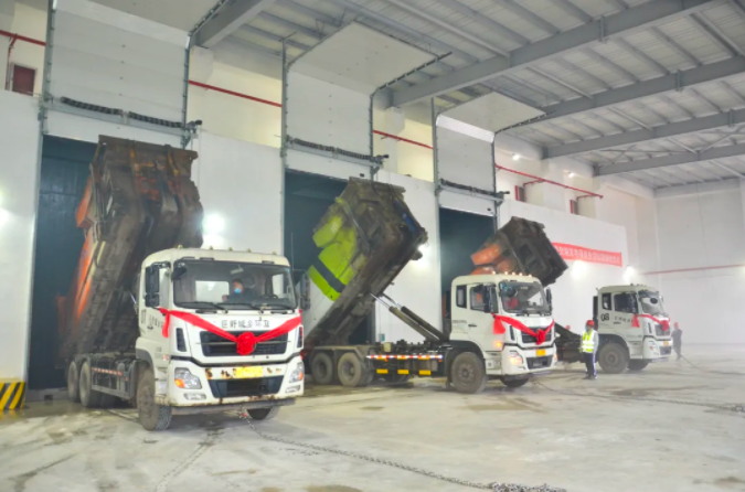 随后,王冰亚副局长宣布接收仪式开始。满载生活垃圾的转运车缓缓通过地磅,驶入垃圾卸料平台并稳稳将生活垃圾卸入垃圾储坑。垃圾入库标志着项目完成重要节点,各设备系统正式进入调试阶段,向着并网发电目标又迈进了一步。