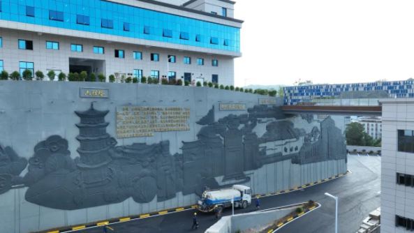 项目建筑设计从自然和社会需求出发,考虑到延续泉州的城市肌理,结合生态治理、世界遗产文化、宗教文化、环保科普等多种元素,打造了入口景观区、美岭湖景观、综合楼景观区、厂区墙面泉州世遗22景、长廊景观带、宗教文化展廊等多个区域,串联起一条生态文化景观轴。同时融合运用石雕、挂画、交互式智能应用场景等形式,使其具备垃圾处理、环保科普、形象展示、审美游憩四大功能,形成助力城市发展的生态纽带、倡导环保宣教的科普基地、融汇城市文化的景观长廊,不仅饱含了传承、创新、和谐、发展的文化温度,也体现了“天人合一、地物和谐”的发展观。
