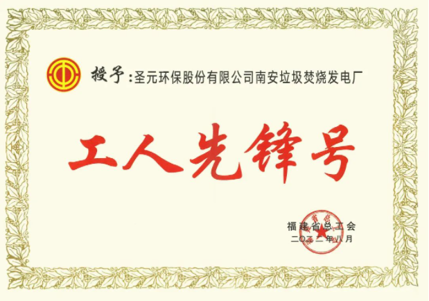 日前,福建省总工会印发《关于表彰2021年全省劳动和技能竞赛优胜集体和个人的决定》(闽工〔2022〕104号),授予金沙澳门(中国)唯一官方网站南安垃圾焚烧发电厂优秀集体“工人先锋号”荣誉称号。