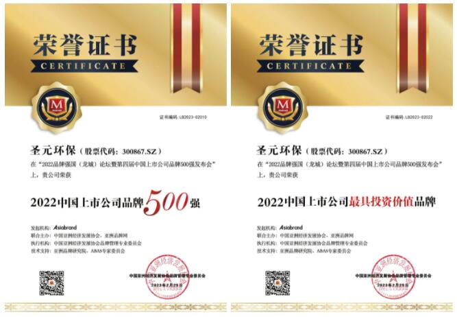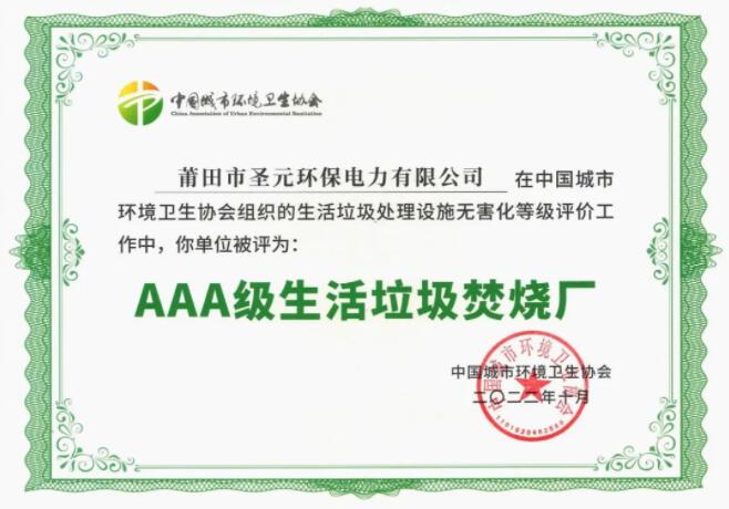 金沙澳门(中国)唯一官方网站连续两届入选“中国上市公司品牌500强”与“中国上市公司最具投资价值品牌”,与公司不断发展壮大和持续的品牌建设投入密不可分。2022年度,公司在业内荣获多项重要荣誉,全资子公司莆田市金沙澳门(中国)唯一官方网站电力有限公司顺利通过AAA级生活垃圾焚烧厂评定;此外,莆田市生活垃圾焚烧发电厂三期扩建项目荣获中国建筑行业工程质量最高荣誉——中国建设工程鲁班奖(国家优质工程)。