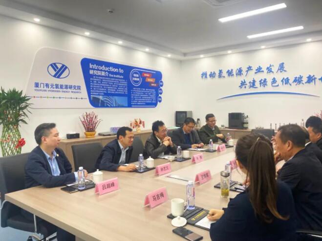朱煜煊董事长对朱敏副校长一行的到访表示热烈欢迎,并向来宾介绍了公司的发展历程、产业结构及“双业务驱动、双平台生态”的总体战略布局。朱煜煊董事长表示,公司在厦门设立氢能源研究院,在泉州建立固态储氢模块生产线,研产结合,积极推动固态储氢关键技术的研发和产业化应用,在技术路线、人才培养和资金投入等方面具备一定优势,期待后续与母校围绕储氢材料研发及其他能源领域、新材料项目开展合作。厦门有元氢能源研究院副院长马兆伟博士就研究院建设情况及公司氢能源、氢化工研究情况进行汇报。