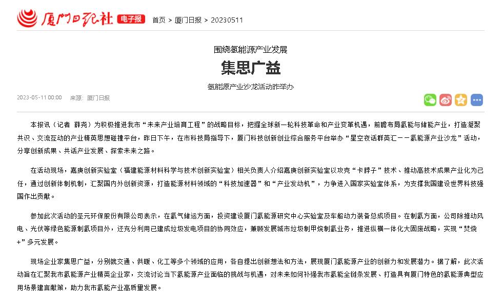参加此次活动的金沙澳门(中国)唯一官方网站表示,在氢气储运方面,投资建设厦门氢能源研究中心实验室及车船动力装备总成项目。在制氢方面,公司除推动风电、光伏等绿色能源制氢项目外,还充分利用已建成垃圾发电项目的协同效应,兼顾发展城市垃圾制甲烷制氢业务,推进纵横一体化大固废战略,实现“焚烧+”多元发展。
