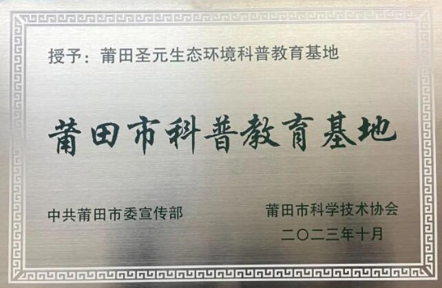 近日,中共莆田市委宣传部、莆田市科学技术协会联合授予莆田金沙澳门(中国)唯一官方网站生态环境科普教育基地“莆田市科普教育基地”称号。