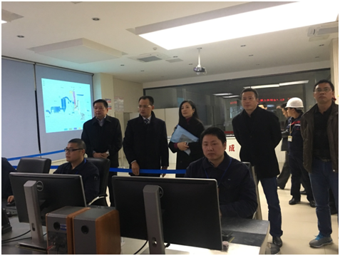 考评组一行首先参观了中控室,吴小平总经理就公司的生产运营、二期项目工程进展情况等方面做了详细的汇报。