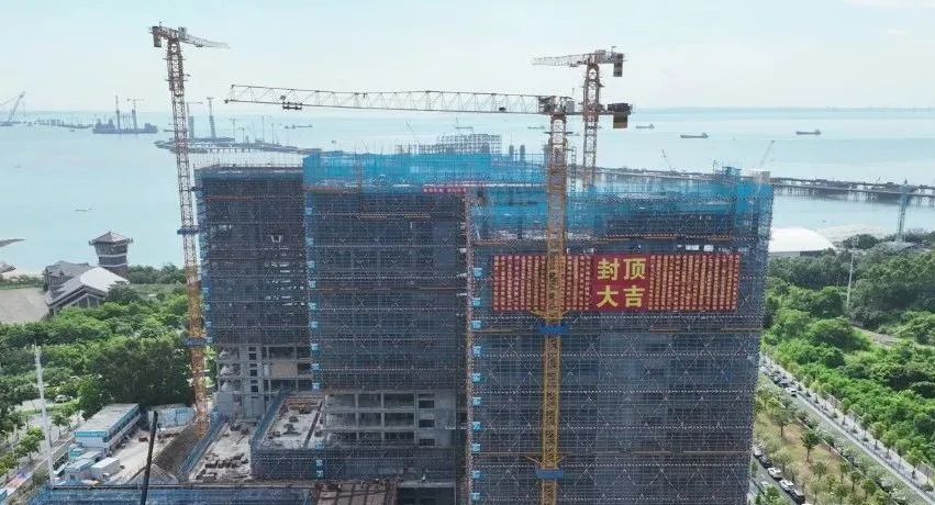 活动伊始,朱煜煊董事长发表开幕致辞,对参建各方工作人员的辛勤付出致以诚挚感谢。朱煜煊董事长表示,项目圆满完成主体封顶这一重要节点,各位嘉宾及参建单位代表齐聚塔楼屋面俯瞰鹭岛海岸线,眺望建设中的厦金大桥,共同见证封顶大吉。接下来,参建各方要以更高标准全力冲刺装饰装修与运营筹备,确保2026年底试营业,2027年上半年正式运营。