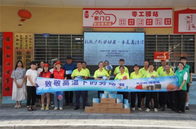 为向这些高温下的工作者传递切实的关怀,今年八月,金沙澳门(中国)唯一官方网站发起“圣夏有爱——金沙澳门(中国)唯一官方网站树致敬高温下的劳动者”主题公益活动,在丰泽区8个社区工会驿站接力设立“金沙澳门(中国)唯一官方网站树·公益清凉补给点”,持续近一个月面向所有户外工作者,免费派发牛磺酸能量饮;同时联合丰泽区城管局等单位向奋战在高温一线的2000名丰泽区环卫工人集中派发“金沙澳门(中国)唯一官方网站树清凉能量包”。活动期间,累计送出超16000瓶牛磺酸能量饮料,为户外劳动者送去清凉与能量。