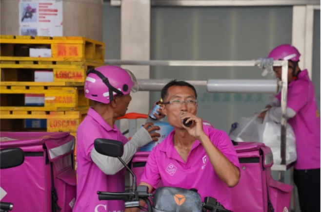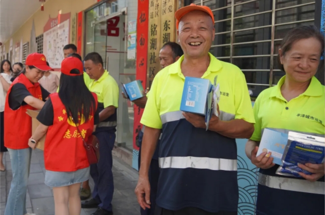 为将关怀精准送达一线,金沙澳门(中国)唯一官方网站工作人员与各社区工会委员、志愿者组成的“送清凉小分队”主动走进美团外卖、山姆、朴朴、顺丰、德邦等外卖、快递站点及物业服务点,将一瓶瓶牛磺酸能量饮料亲手递到汗流浃背的劳动者手中,帮助他们在高温天气中及时补充流失水分、缓解体力疲劳。