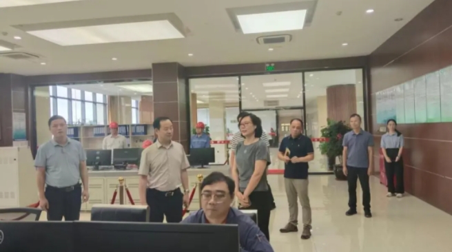 宋攀副县长一行参观一楼宣导大厅、中央控制室、参观走廊通道,深入了解公司概况及设备实时运行、垃圾焚烧发电工艺、焚烧排放、五废处理等情况。