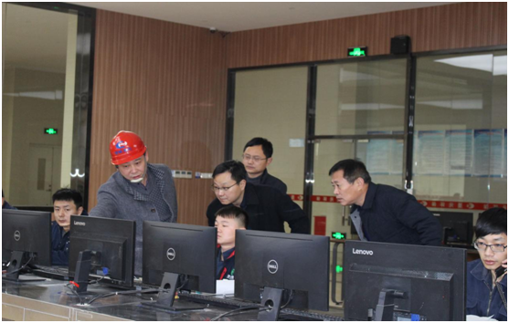 在中控室,董良峰部长对郓城厂的生产运行情况进行了调研。