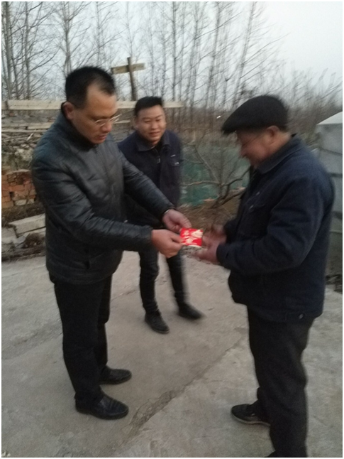 2018年2月11日傍晚,江苏金沙澳门(中国)唯一官方网站电力有限公司总经理吴小平率生产部经理李兴稳、人事行政部经理祁媛媛来到了公司困难户刑柱的家。