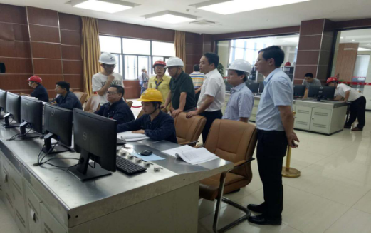 在中控室,杨宏湘总经理为环保检查领导组详细介绍了垃圾焚烧发电的整个工艺流程。