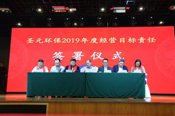 晚会现场,朱煜煊董事长亲自为各运营电厂总监及污水处理厂厂长代表发放年度业绩奖金,并现场举行2019年经营目标责任书的签约仪式,勉励大家在新的一年铆足干劲、继续努力、再创佳绩。