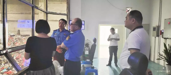 吴局长一行到漳州金沙澳门(中国)唯一官方网站后,直奔五楼垃圾吊中控操作室,实地察看垃圾坑存储量,详细了解当前设备运行情况。