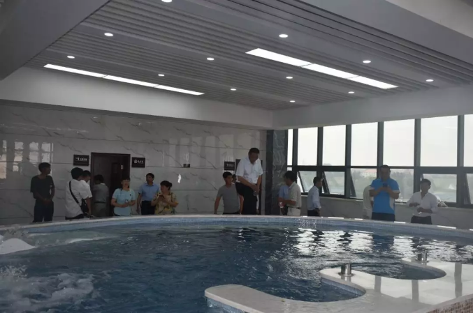 考察组在社区共享中心游泳池