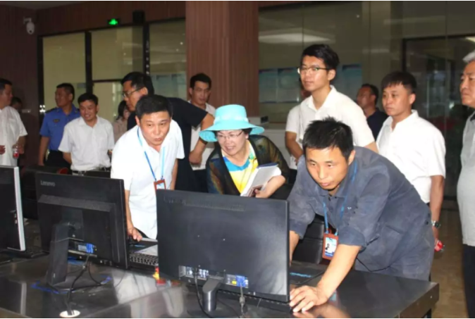 随后,专家走进中控室,了解公司全过程动态监控和数字化管理模式,并询问各项仪表数据及显示屏实时报告,深入了解各工序运行情况。