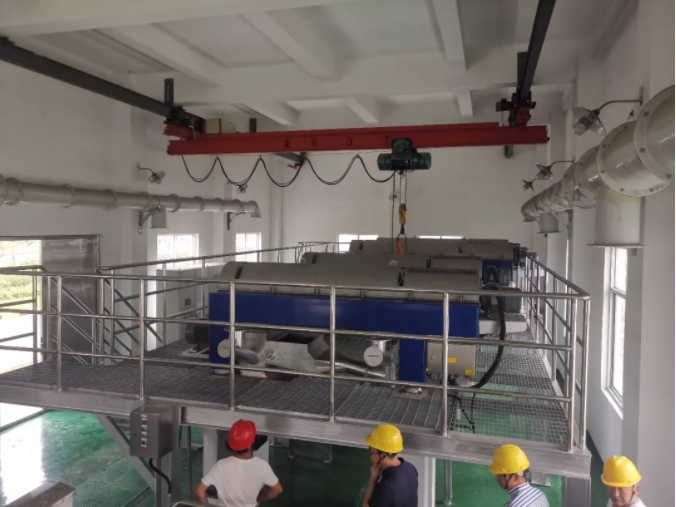 考察组在无锡惠联污泥脱水车间考察除臭风管布置