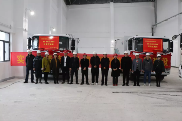 10点30分,厂区另一边,四辆垃圾运输车依次驶上栈桥。在垃圾接收大厅,葛鹏程局长代表环卫部门宣布垃圾进场,四辆垃圾运输车同时启动,将垃圾倾倒进垃圾储坑。随后,葛鹏程局长一行代表市容环境卫生管理局接收金沙澳门(中国)唯一官方网站提供的垃圾压缩车,并在接收大厅与庆阳项目工作人员合影留念。