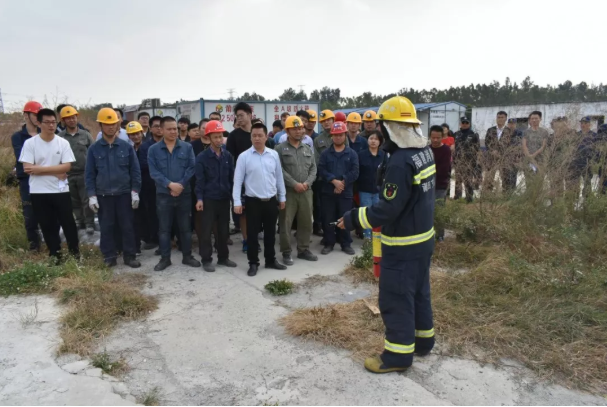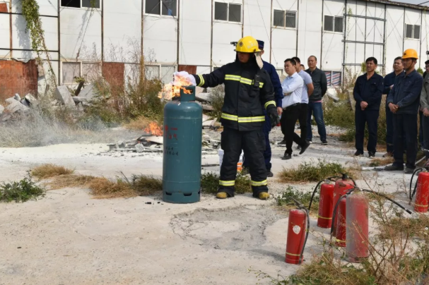 在室外演练场,东庄中队指挥官就消防知识、日常各种火灾的应对、灭火器的使用等进行讲解。随后,参训员工使用灭火器进行灭火操作。