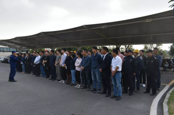 此次消防演练主要模拟并演示宿舍发生火灾后,员工如何自救逃生、使用消防器材及扑灭初起火灾。演练现场,员工用湿毛巾或手捂住口鼻,迅速有序地弯腰从宿舍楼撤离,到达紧急集合点。